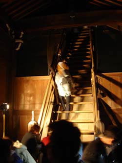 Climbing up into the attic of a temple for an all-night chant
