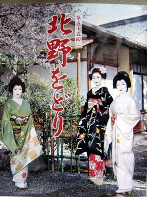 Poster advertising the upcoming performance of the maiko in the middle