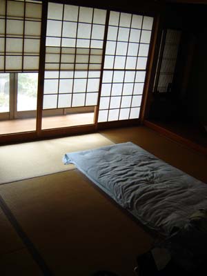 Though I usually slept on the floor of an office, at the end of my stay Ayako turned crazy, and stole all my bags and stuff from the office. She locked it all (and herself) in her apartment and refused to come out or give it back. I had to call the police, but then the company (and apartment building) owner made her give it all back. He then told me it would be better to stay with him at his parent's house for a night or two, and no longer stay in the office (which was next door to Ayako's apartment). Crazy. This was my nice new digs at his house for a couple nights. Thanks Mr. Nakamura!