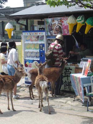 One of the things people come to see are the wild deer roaming all around. They have learned to trust humans because of all the school children who feed them all day.