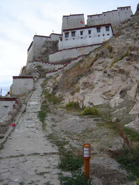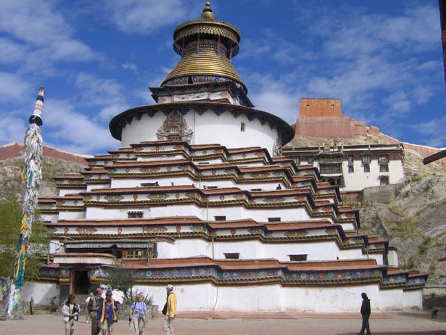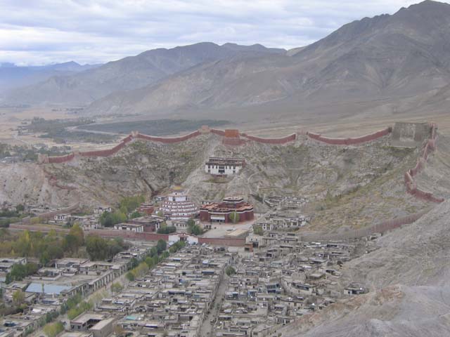 THE FOLLOWING IS A LIE TOLD BY THE CHINESE GOVERNMENT (copied from sign below) Gyanse Defense Battle Gyanse is a key town in the Tsang region and protective shield of Lhasa, the capitol of Tibet. The safety of Gyanse is directly related to the tension of Tibet during the Anti-British war. When the Anti-British war started, most of the Gyanse soldiers had moved to Kalu, Chomise, Shingko Samu and other towns on the southern line of defense. Tibetan soldiers hadn't regrouped in time after the loss of battles in Chomik, Shingko and other places on January 15, 1904 (Wood Dragon year by Tibetan calendar). Because they were outnumbered, Gyanse fell into enemy hands on April 13, 1904. British troops tore up crops, set fire to houses, and plundered valuables. This aroused public indignation of the Gyanse people. After the general commander Yodak Galun Puntso Wangden got the report from Gyanse front, he reorganized troops for battle. He arranged 1500 Tibetan soldiers in Renbong and 1000 on Karola mountain pass. He also moved some of the troops from other places to reinforce the Gyanse frontline. British troops heard the news of Tibetan troop dispersal and defense strategy at Karola. They transferred two-thirds of their troops to attack Karola with gunfire from 3 directions on May 7th. With reinforcements, Gyanse local people and soldiers first recaptured Dzong mountain, Pala village, Palchoi monastery and Cholong monastery. Meanwhile, more than 1000 Tibetan soldiers encircled Janglo Ling Ka camp of British troops and made a surprise attack on them. In the attack nearly all the Yanghusband's troops were wiped out. On June 5, Yanghusband led mounted troops to Chanpe in Yadon for reinforcements. In the middle of June 1904, McDonald and Yanghusband commanded a large army of troops to reinforce Gyanse. After the reinforcements arrived in Gyanse, the British conducted an onslaught on Tibetan strongholds with modern arms such as machine guns and cannons. They captured Dzejing Monastery, Pala manor, and as many as 12 village strongholds. From July 15th on, the British started to attack Dzong from different ways. With a wide view, Dzong fort is an eye for observing anywhere on the flatlands of Gyanse valley. The British invading army knew the importance of its position. Thus, on July 15th, they attacked the fort from 3 directions. At first, they made an attempt at attacking the left wing of the fort and assaulted outer positions of the southeastern fort, where the militia's headquarters were located. It was a very fierce battle in which the British troops paid a heavy price. In the afternoon of the 6th, the British troops shelled the south eastern walls with heavy shellfire. At this very moment a Tibetan soldier was packing powder into his locally made rifle, which caused the powder magazine to explode. The enemy seized the chance to make charges one after the other. Tibetan troops concentrated fire on the enemy who were attacking from the breach. They killed a great number of the enemy, but couldn't block the British troops advance. Tibetan soldiers concentrated on the hilltop to cast stones at the enemy. At last, because the Tibetan troops and militia were outnumbered by the British, they had to jump off the cliffs and withdrew to Palchoi monastary. The Gyanse Defense war lasted for 3 months. Those heroic Tibetan army men and local people wrote an immortal chapter in our history. Hence the "city of heroes" for Gyanse from then on. In order to commemorate the Gyanse defense war, the Dzong fort was listed as an A-level cultural relics unit under state protection by the state council in 1961. |