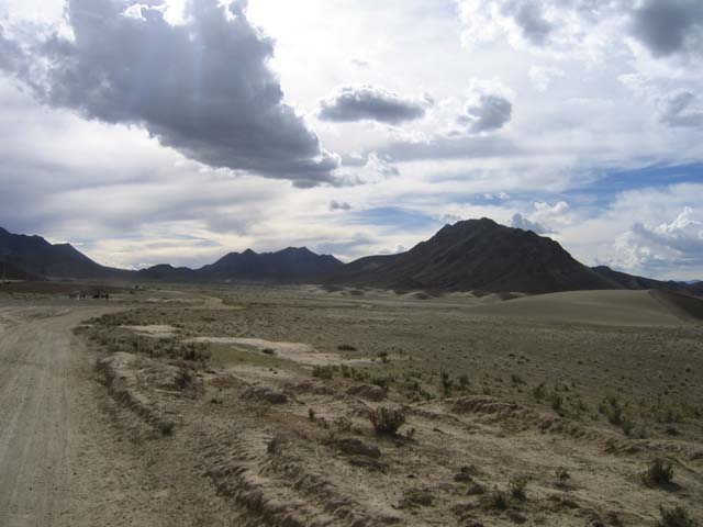 Just on the other side of the desert, we drove through a town. It was our first village and I really wish we had stopped. It looked fascinating. Tons of staring of course.