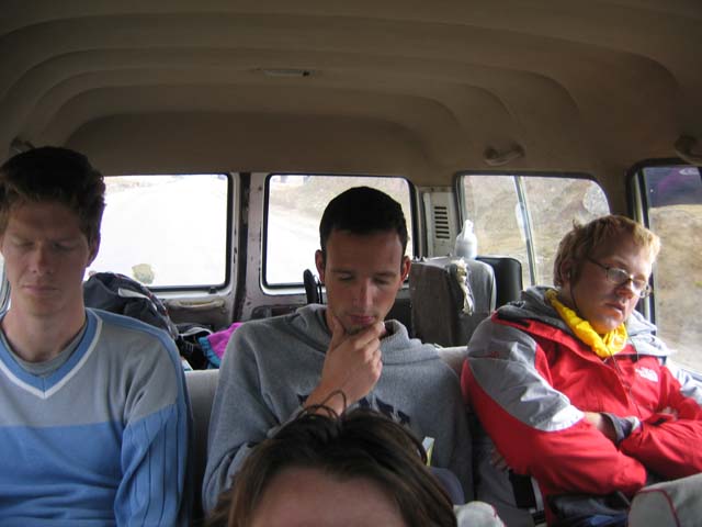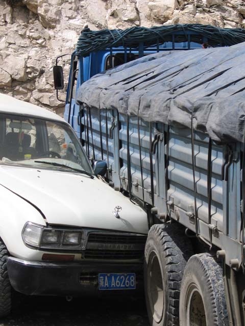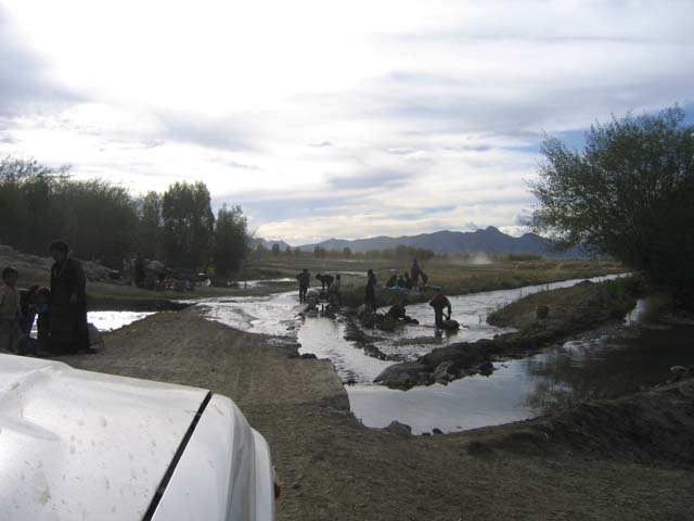 This was our longest day of driving, but the scenery was also the most interesting. Seven hours of 7000 meter peaks, barren dessert, and non-existent roads introduced us to the full variety of Tibetan landscapes. We started it all by waking up in Nam Tso Lake to sub-zero pre-dawn temperatures, and tried to catch the sunrise from the top of a small looking hill behind our campsite. Well, at 5200 meters, even a small hill turned into a monster of a challenge to climb. After that we all packed into our Land Cruiser for the all-day journey to Gyanse. |
