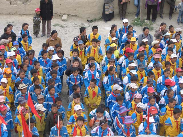 THE FOLLOWING IS A LIE TOLD BY THE CHINESE GOVERNMENT (copied from sign below) Chomik Shingko Massacre The British troops' leader, Yanghusband, kept in mind a crafty plot to write a letter from Duina to Chalu in January 1904. It said " up to now, neither of the main leaders have met each other, nor were any negotiations reached, so the main leaders from both sides should have a meeting at Chimlik Shing Ko." The Tibetan commander, Latingse, and other chief leaders believed the lie and agreed to hold a meeting in Chomik Shingko on January 15, 1904. Attending the meeting was Latingse Dekbom, Namseling Dekbom, Su Kangla and others from Tibet as well as Yanghusband, troop leader Edward Chandler, the army reporter and others from Britain. After the leaders from both sides arrived at the dam in Chomik Shingko and introduced each other, the British troops removed the cartridges from their guns to show sincerity of the negotiation. The Tibetans had to remove the fuses of their Tibetan style guns. The Tibetan leaders ordered the fuses be removed at once, but British army troops encircled Tibetan positions secretly. A British officer pulled out his revolver and shot Latingse Dekbom and Namseling Dekbom. Latingse's bodyguard realized the plot, and shouted "they are going to kill us" and he pulled out his chopper and cut to death more than 10 British soldiers including the British reporter. Latingse pulled out his revolver and shot a signal shot to the Tibetan army to attack. The Tibetan soldiers pulled out their choppers bravely and charged the enemies. The guns the Tibetans had didn't work, and the British used machine guns, rifles, and cannons to massacre the Tibetan soldiers. Latingse, Su Kangla, representatives from the 3 biggest monasteries, and more than 500 Tibetans were killed. More than 200 Tibetan soldiers were injured. The Tibetan army suffered heavy losses in the Chomik Shingko massacre, but their warrior spirit has been spreading widely among the Tibetan people. |