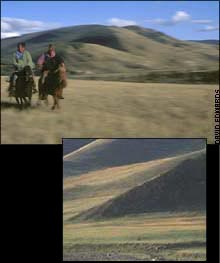 The riders, two men in their early twenties, joined us for a short time, which in Mongolian terms meant two days. We nicknamed them for their looks: the Movie Star and Bad Hair Day, who had about a dozen swirling cowlicks on his head. The strange style made him look perpetually startled.